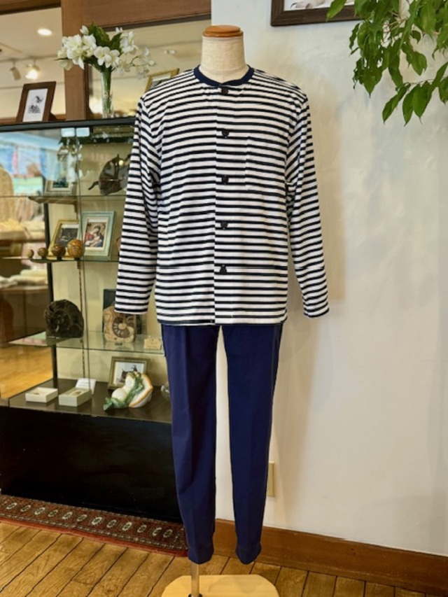 上衣は前あきで楽に着脱でき、リラックス感あふれる一着です。