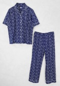 小さな魚や貝殻が全体に散りばめられたポップな柄のパジャマです。