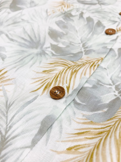 紳士用 6211801 綿麻シーチングボタニカル柄×フレンチリネンキャンパスワッシャー無地(半袖七分パンツ)と合わせられます。
