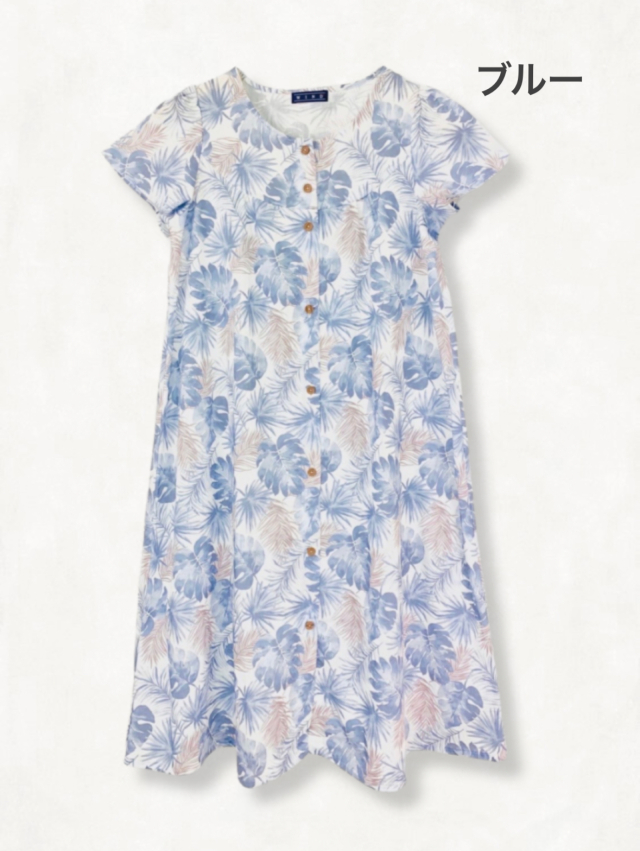 | 製品名: | 綿麻シーチングボタニカル柄 ワンピース(半袖) |