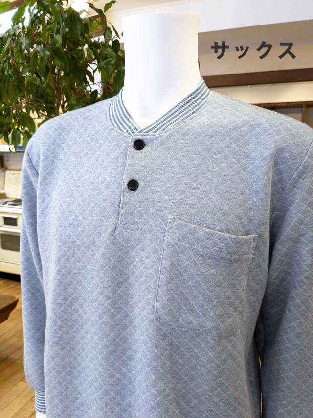 前ボタン2個、左胸ポケット1個、ウエスト総ゴム。
