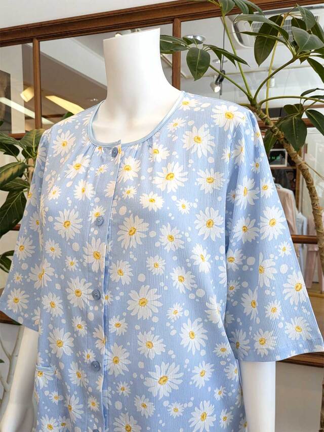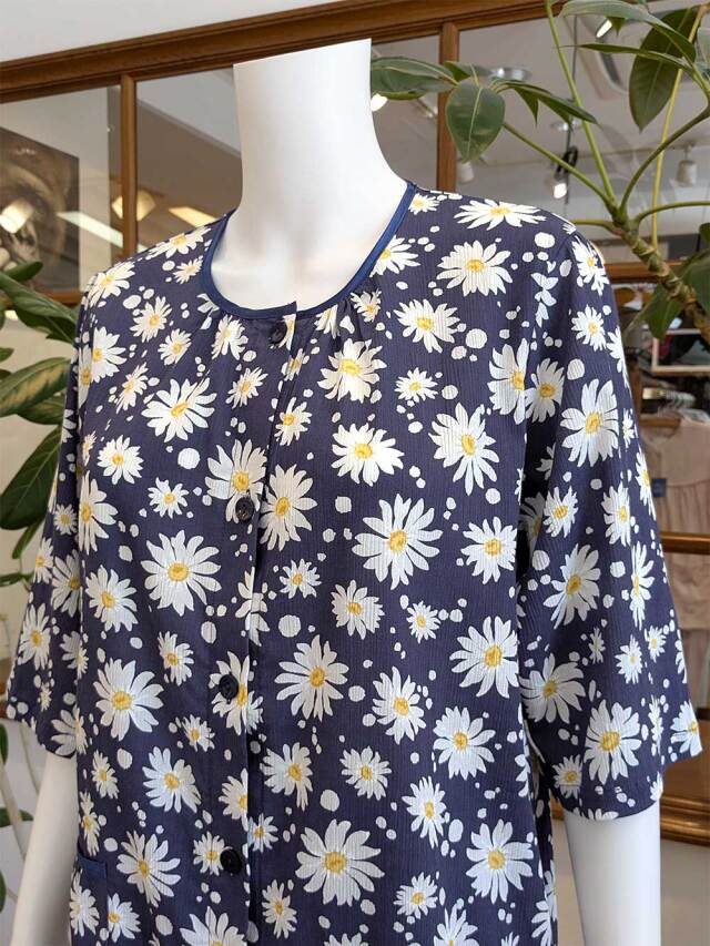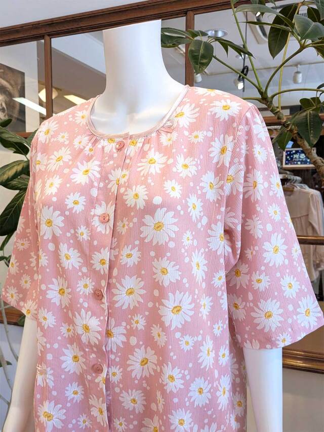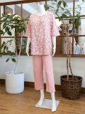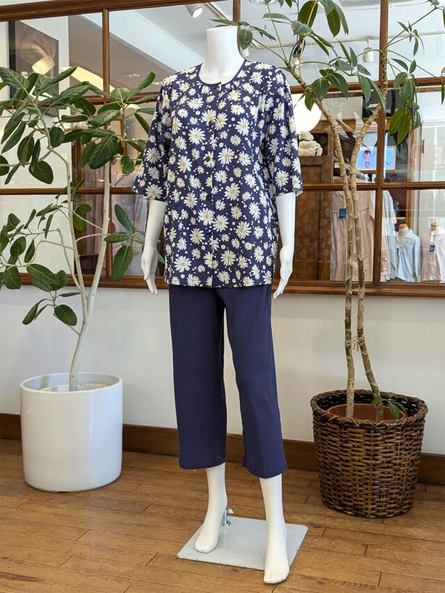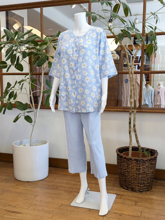 マーガレット柄が散りばめられ、可憐で涼し気なパジャマです。