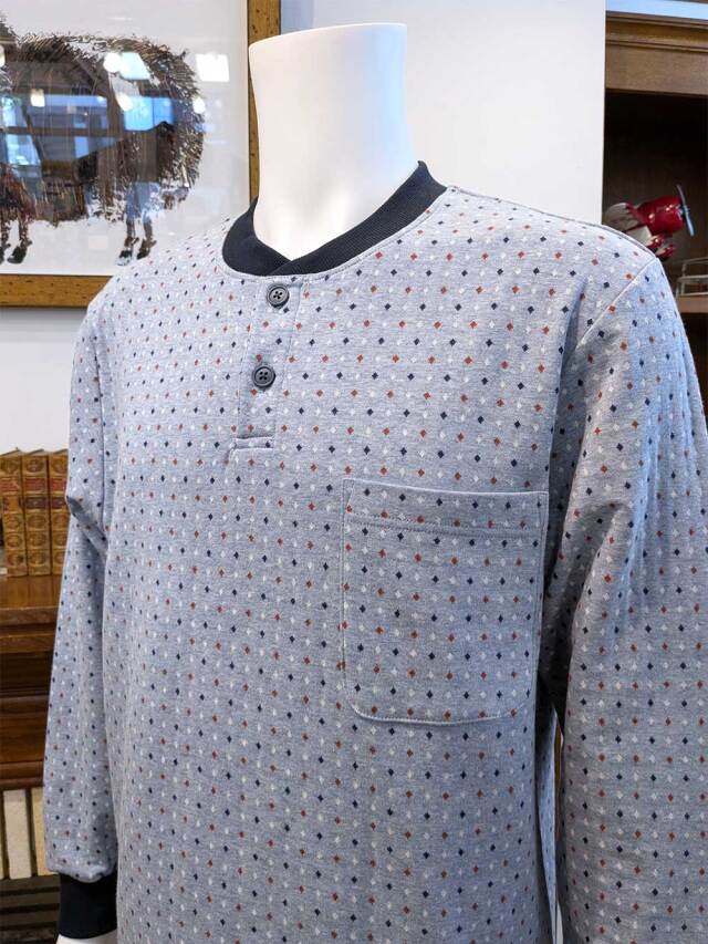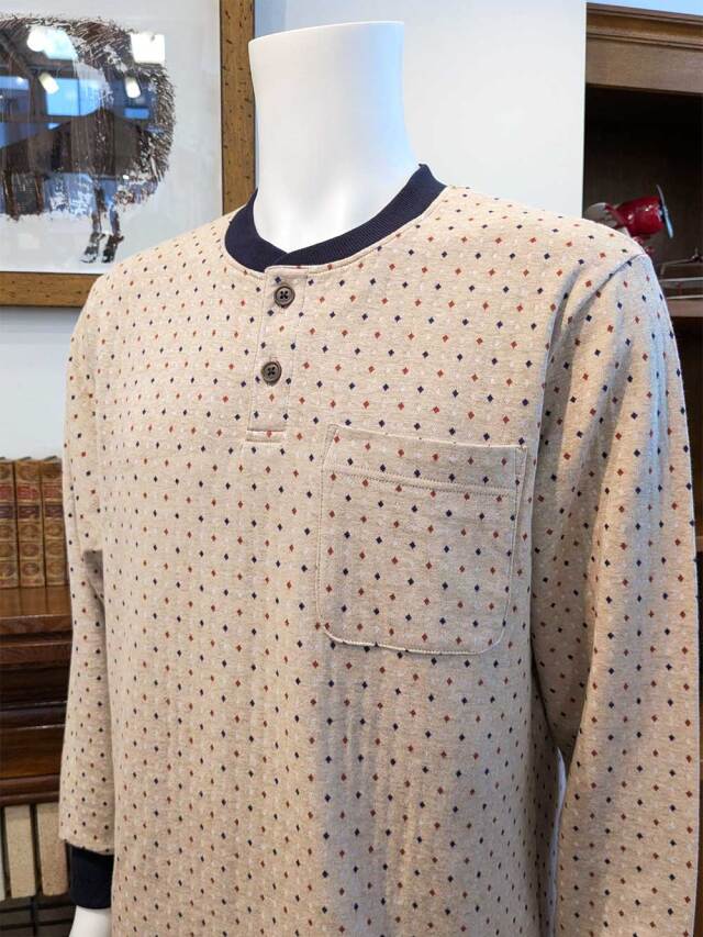 生地の間に空気をたっぷりと含む接結天竺生地で、ふんわりと暖かくお召し頂けます。