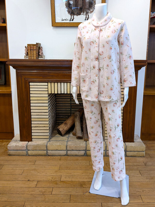 水彩タッチのお花を描いた、優しい色目のキルトパジャマです。