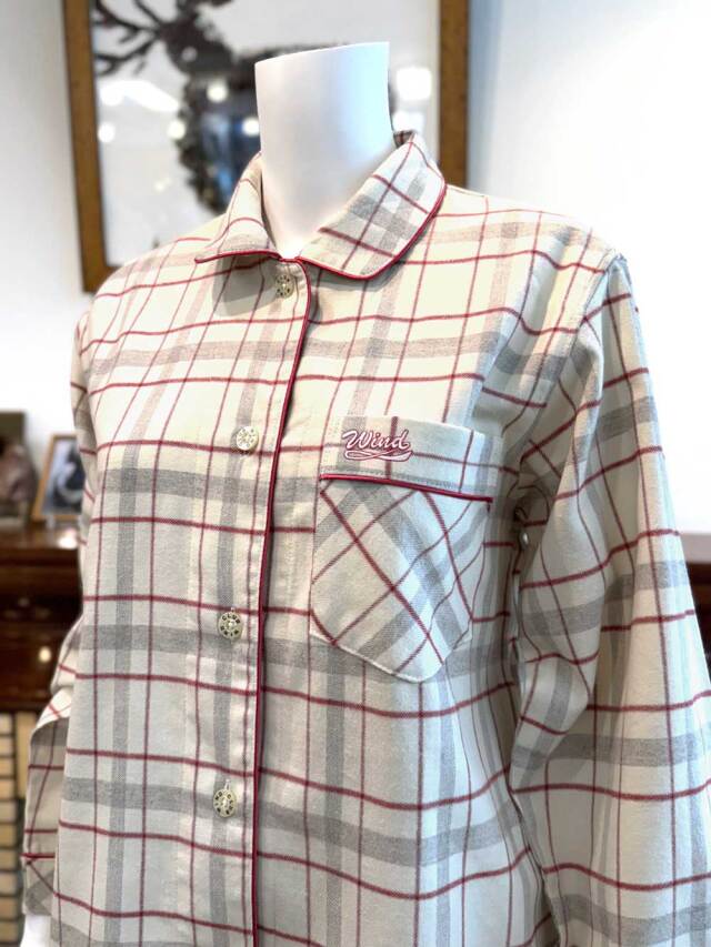 表面を薄く起毛した肌触りなめらかな上質素材のチェック柄パジャマです。