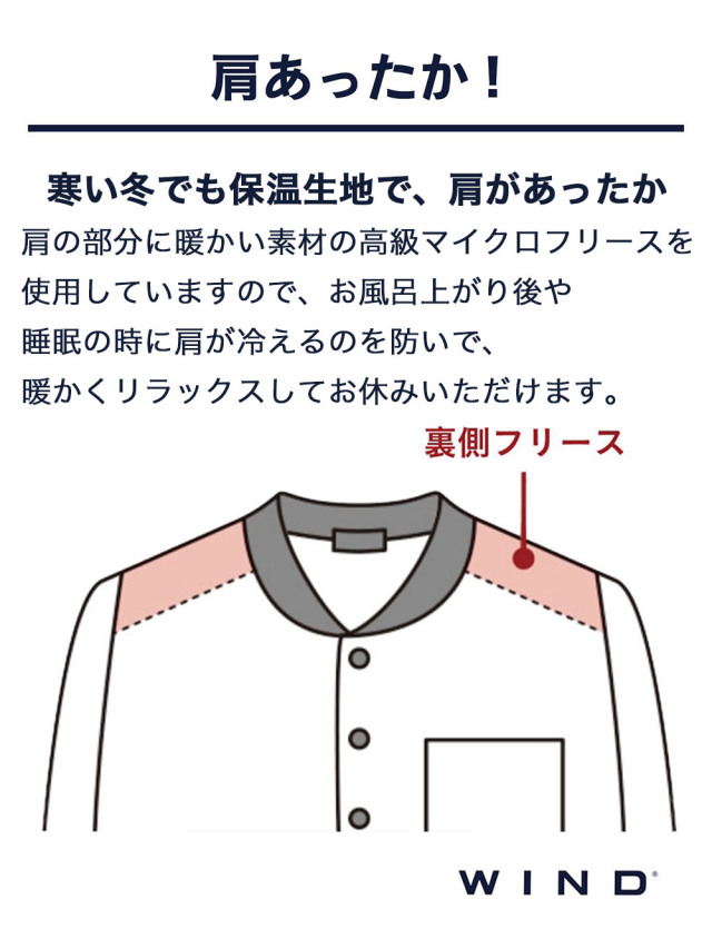 冷えやすい肩部分の裏地にフリースをあしらい暖かさを逃がしません。