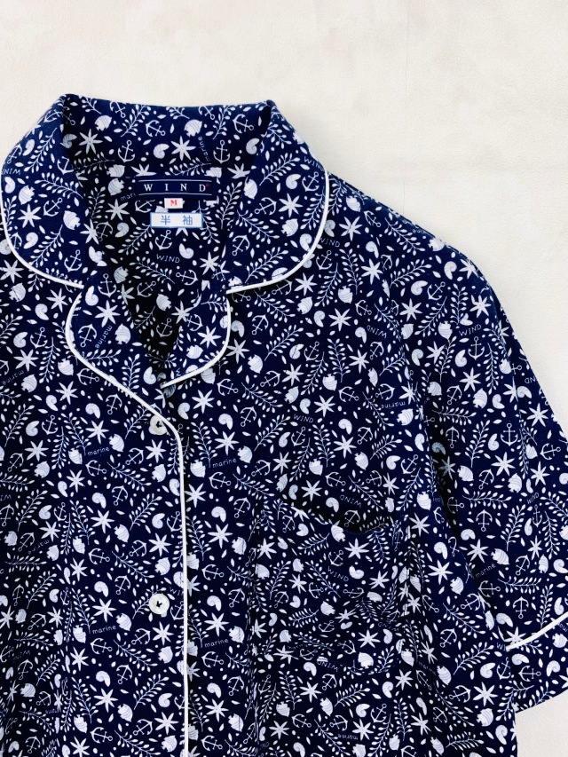 • 綿麻天竺マリン柄(半袖)